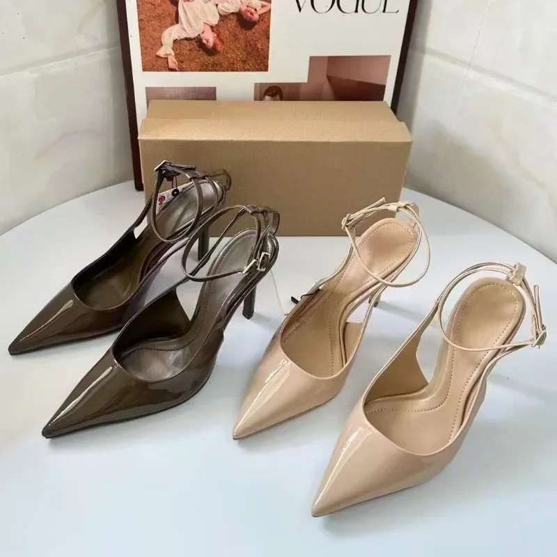2025 Summer Luxury Designer Women Modern Sandals Patent Leather Sexy Ankle Strap Dress Party Slingbacks High Heels Ladies Shoes