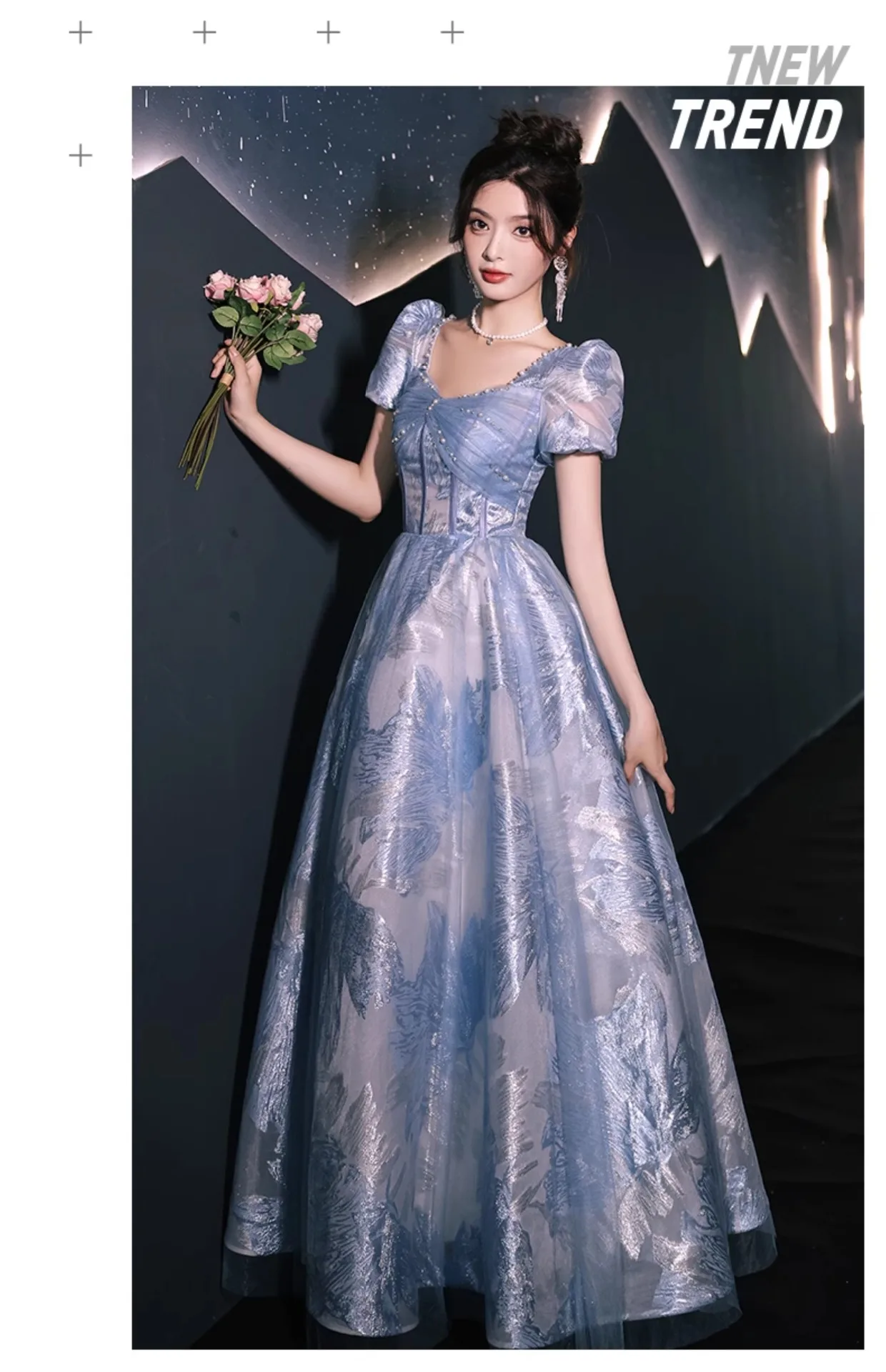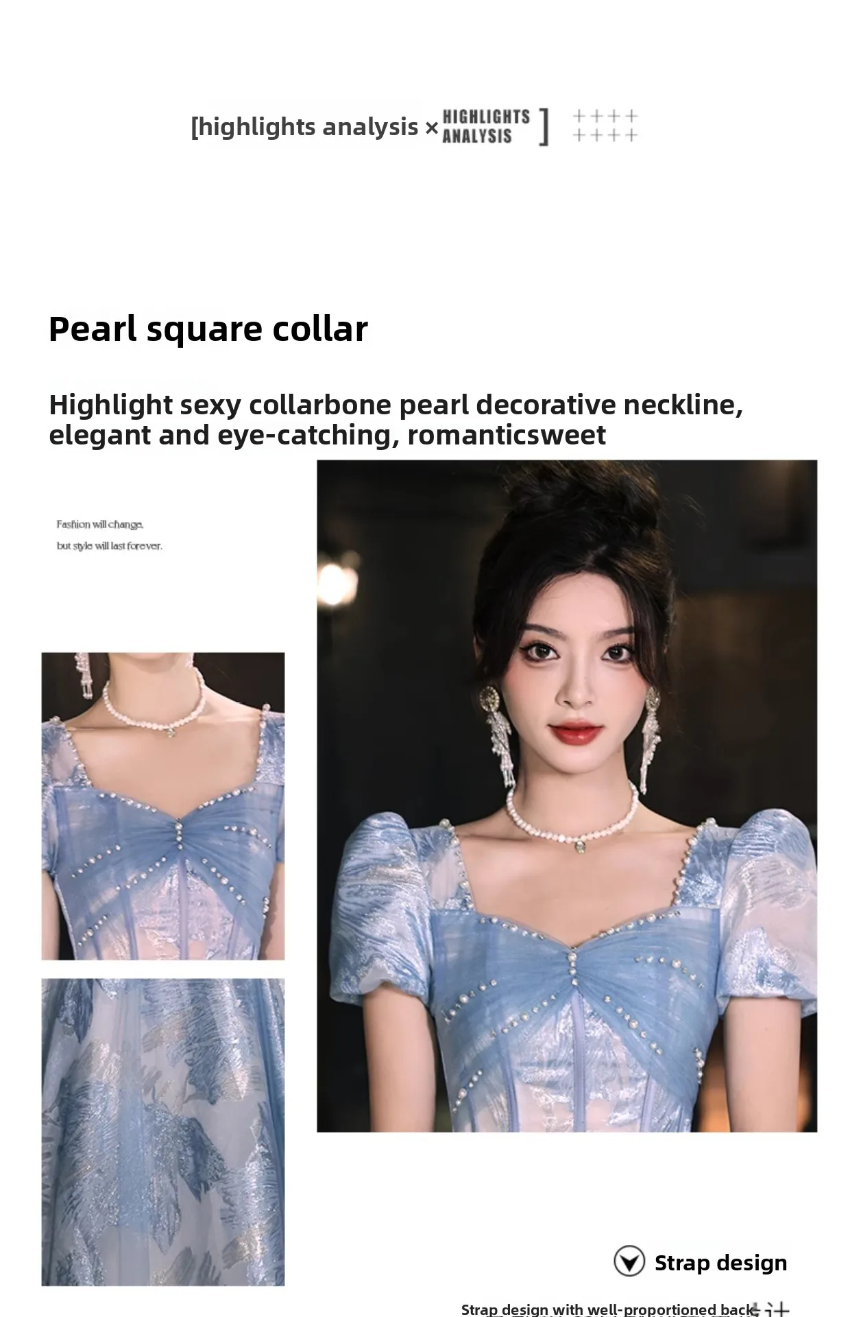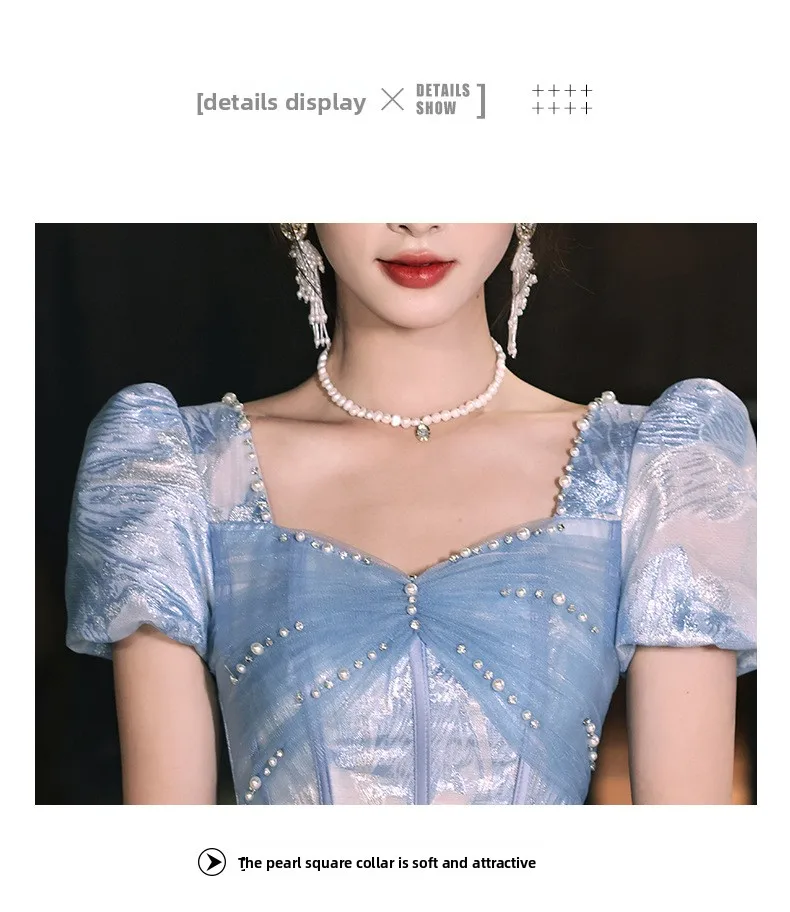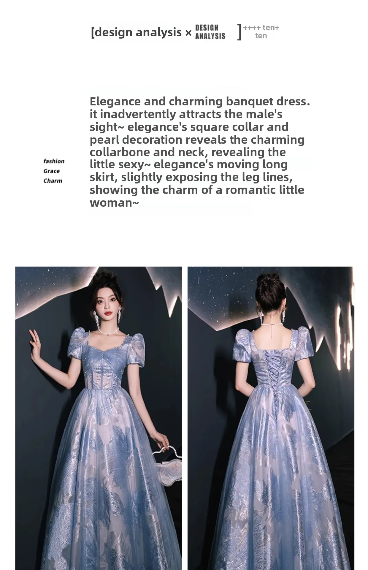 Blue Banquet Evening Dress 2025 New Summer French Style Long Adult Dress Elegant One Shoulder Party Dress for Outdressing