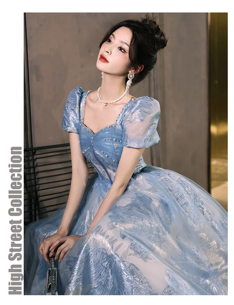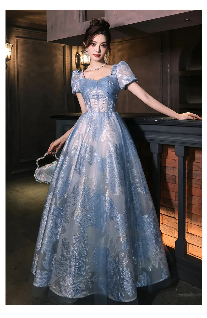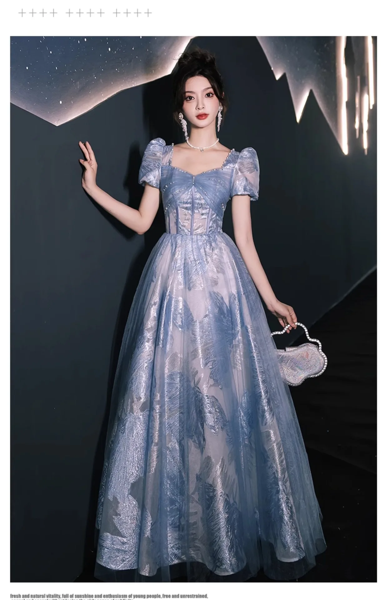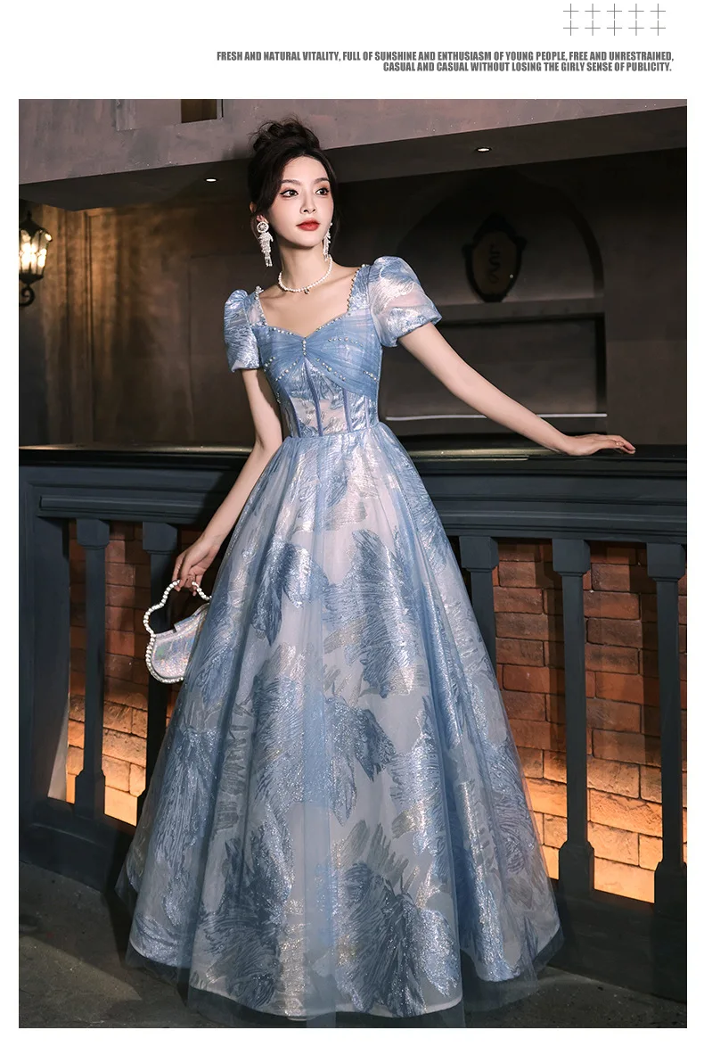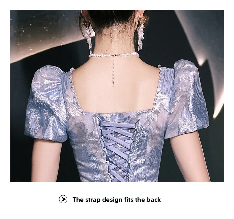 Blue Banquet Evening Dress 2025 New Summer French Style Long Adult Dress Elegant One Shoulder Party Dress for Outdressing