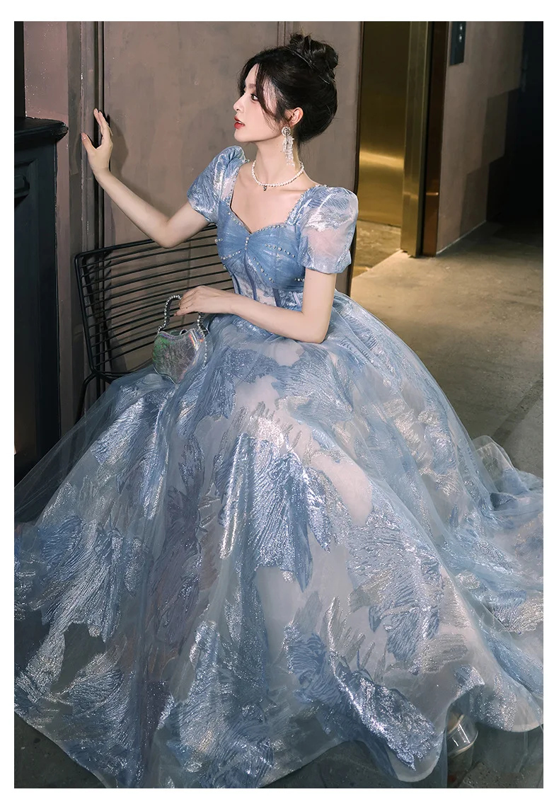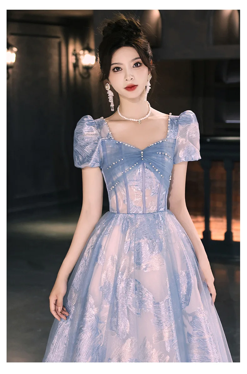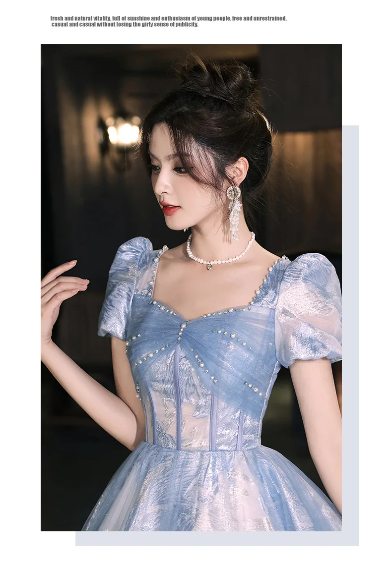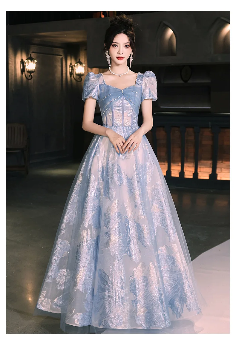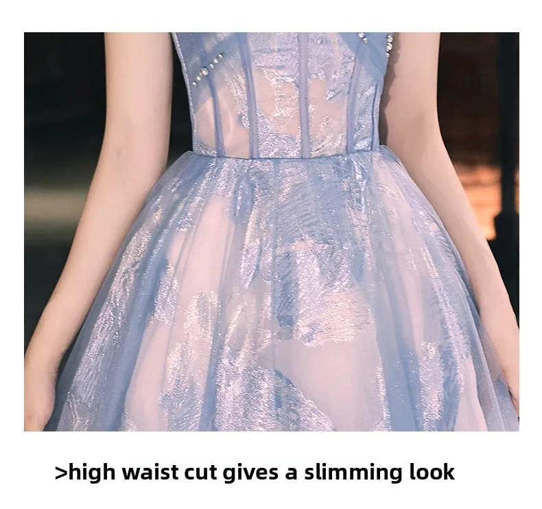 Blue Banquet Evening Dress 2025 New Summer French Style Long Adult Dress Elegant One Shoulder Party Dress for Outdressing