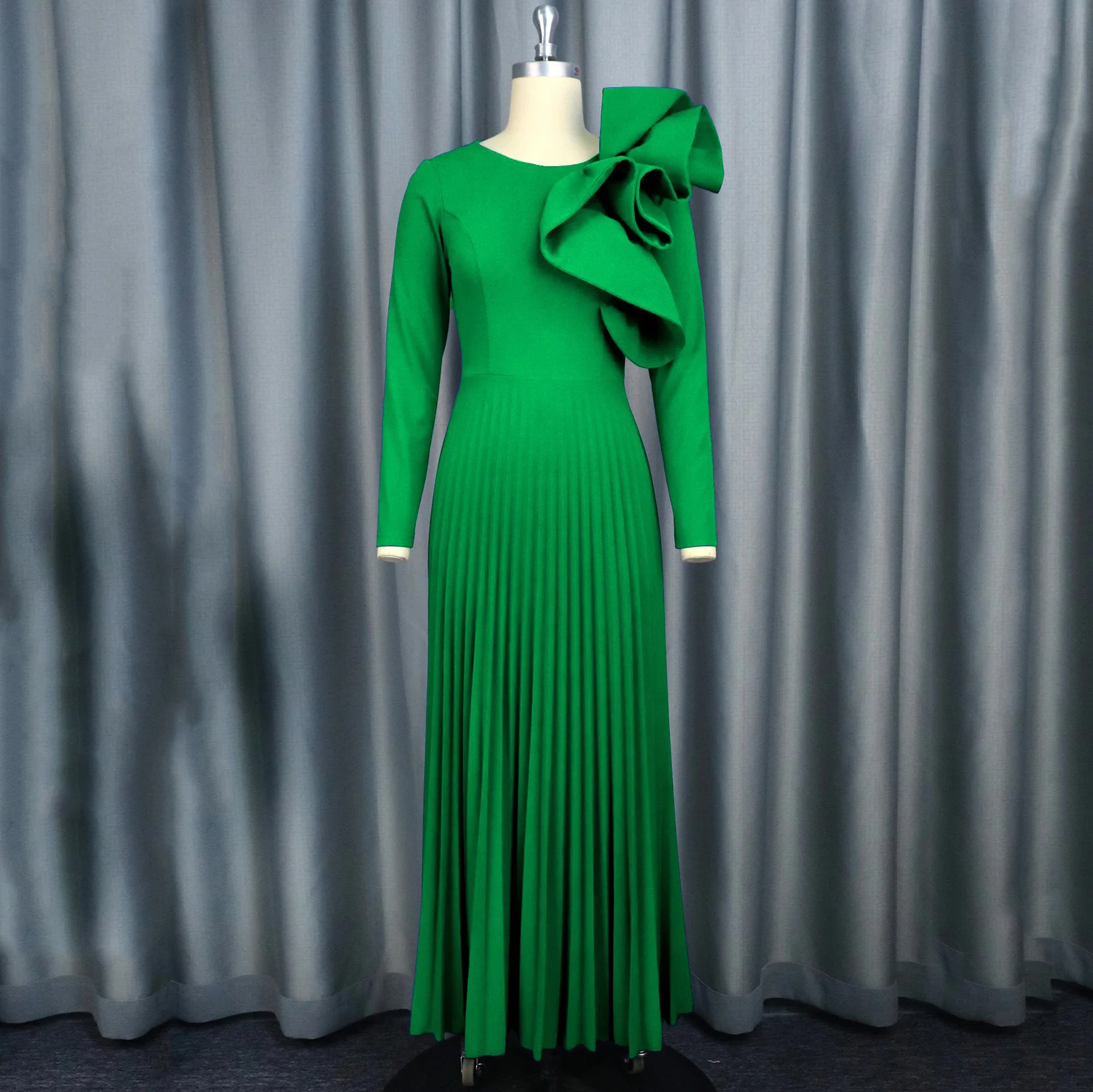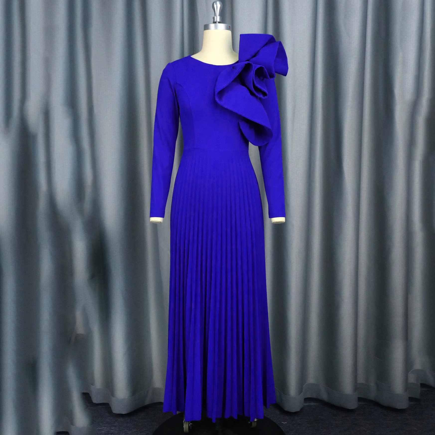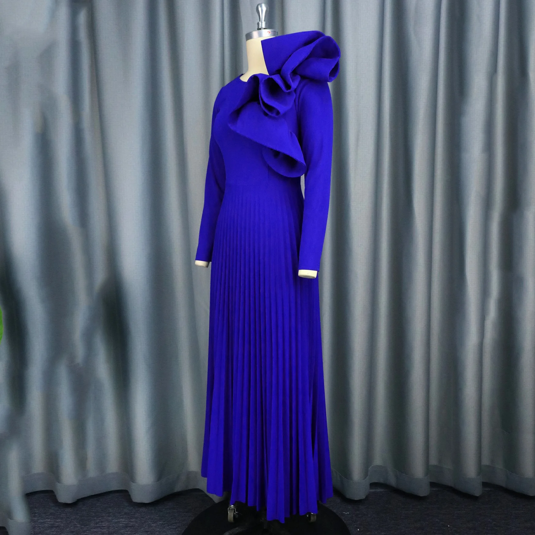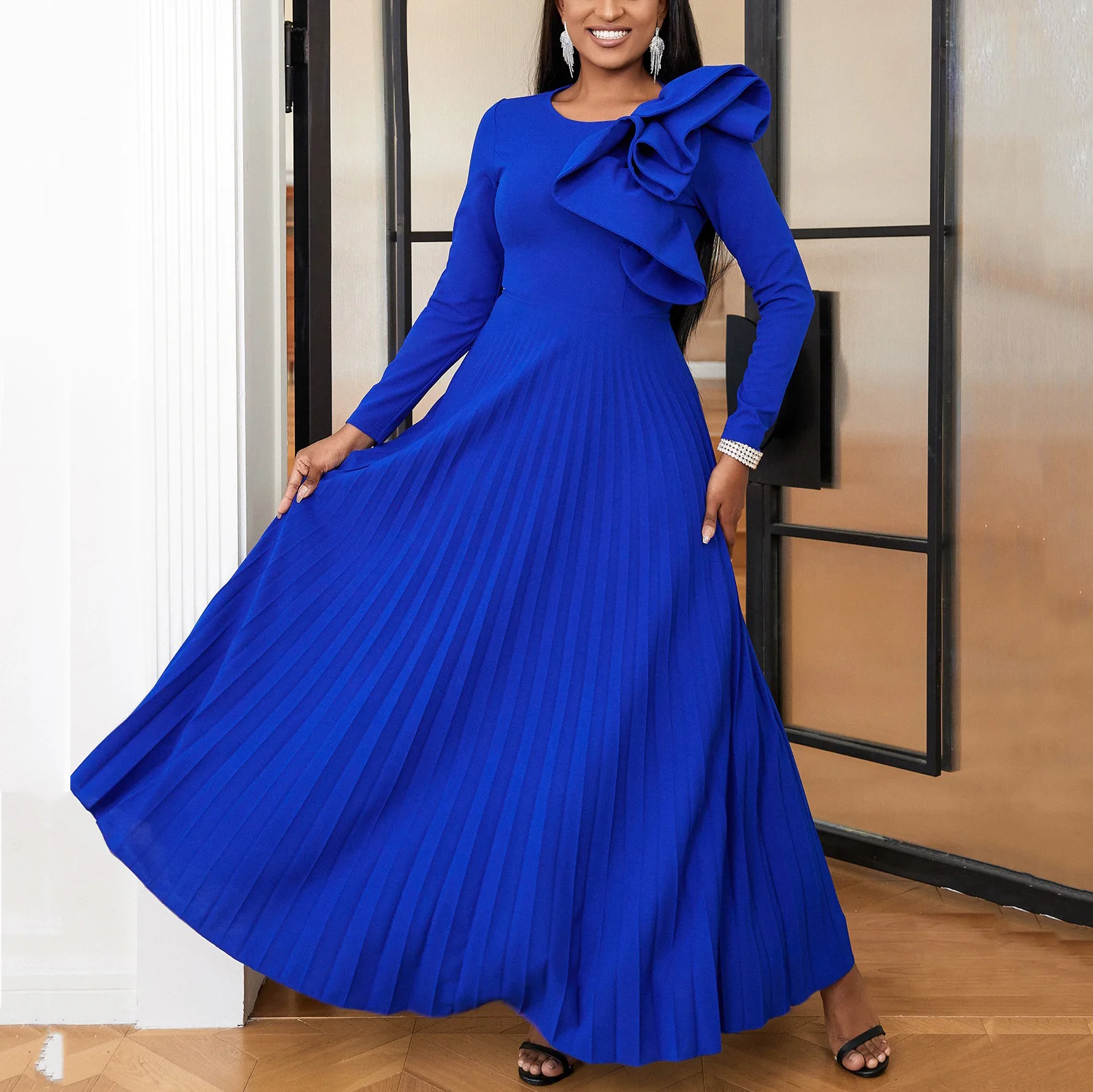 Elegant Long Dresses for Woman 2024 Autumn Winter New O Neck Ruffles Full Sleeve Pleated Ankle Length Luxury Party Dinner Dress