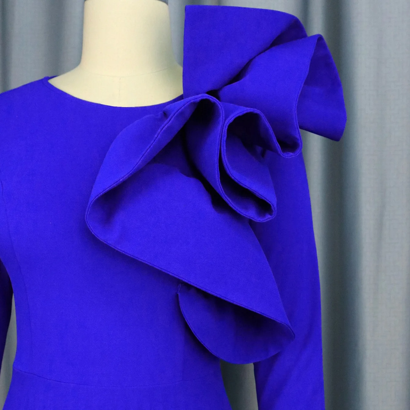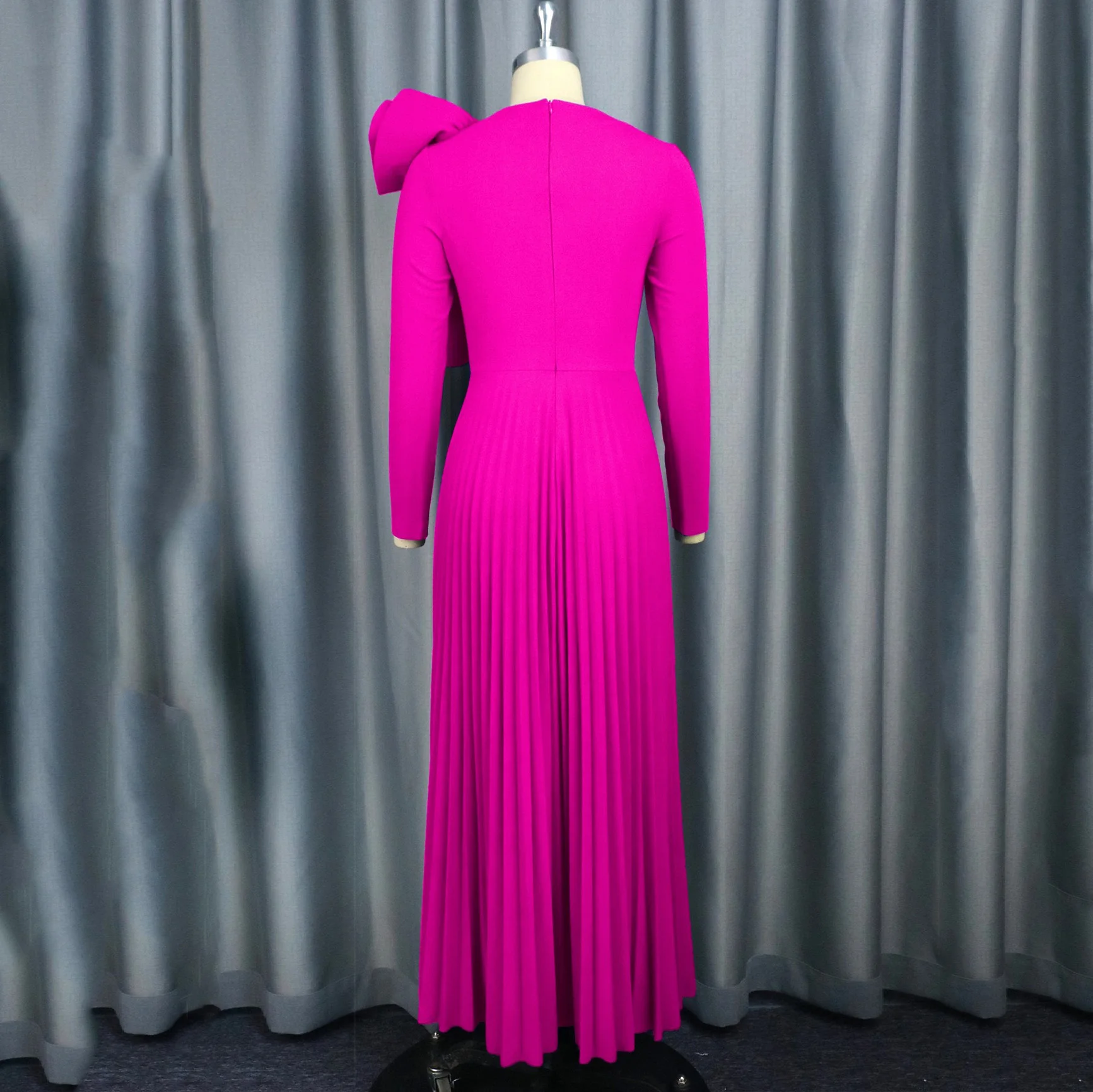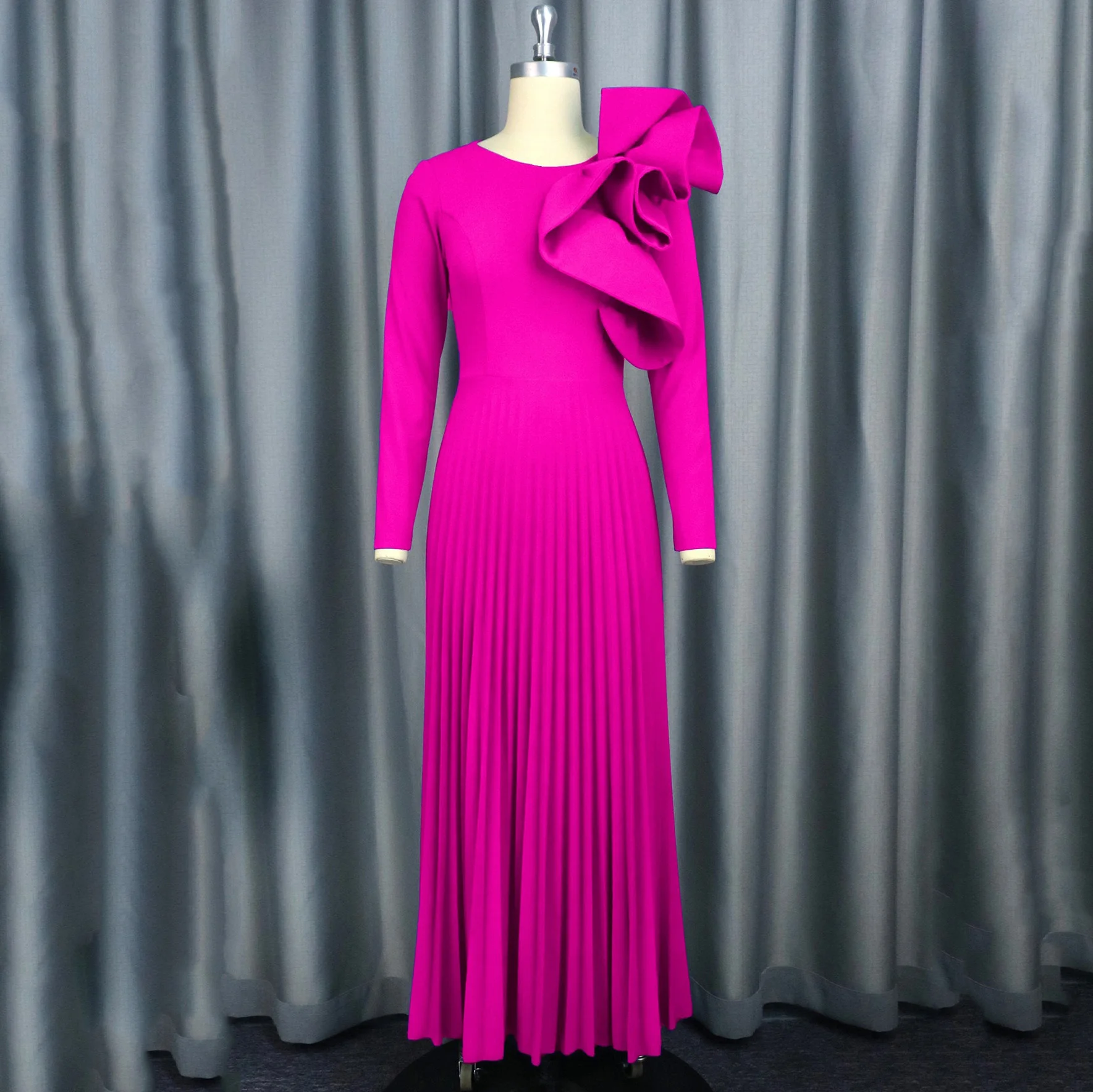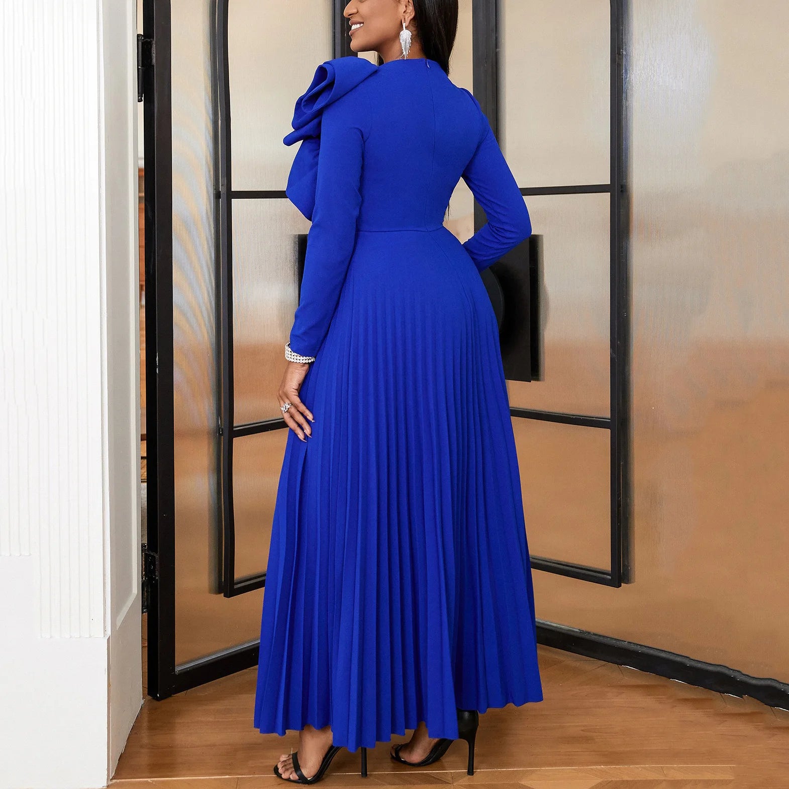 Elegant Long Dresses for Woman 2024 Autumn Winter New O Neck Ruffles Full Sleeve Pleated Ankle Length Luxury Party Dinner Dress