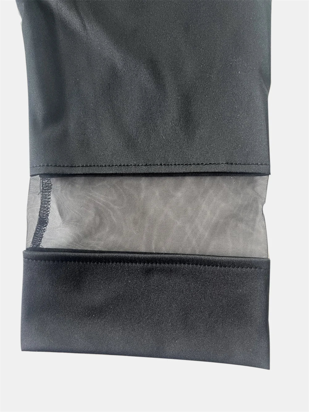 GIBSIE Plus Size Black Contrast Mesh Splicing Long Dress Women Summer O-Neck 3/4 Sleeve Elastic Knitted Elegant A-Line Dresses