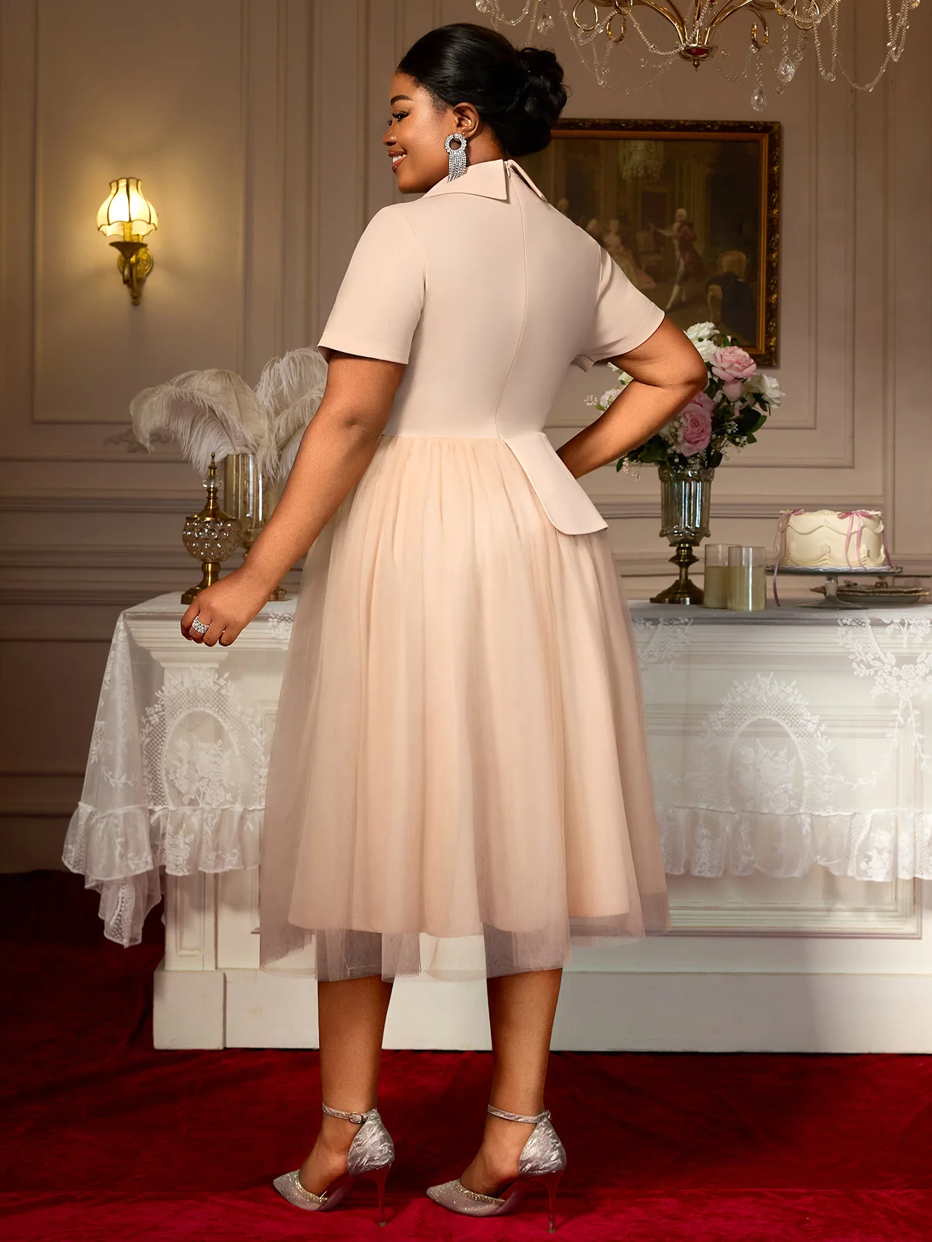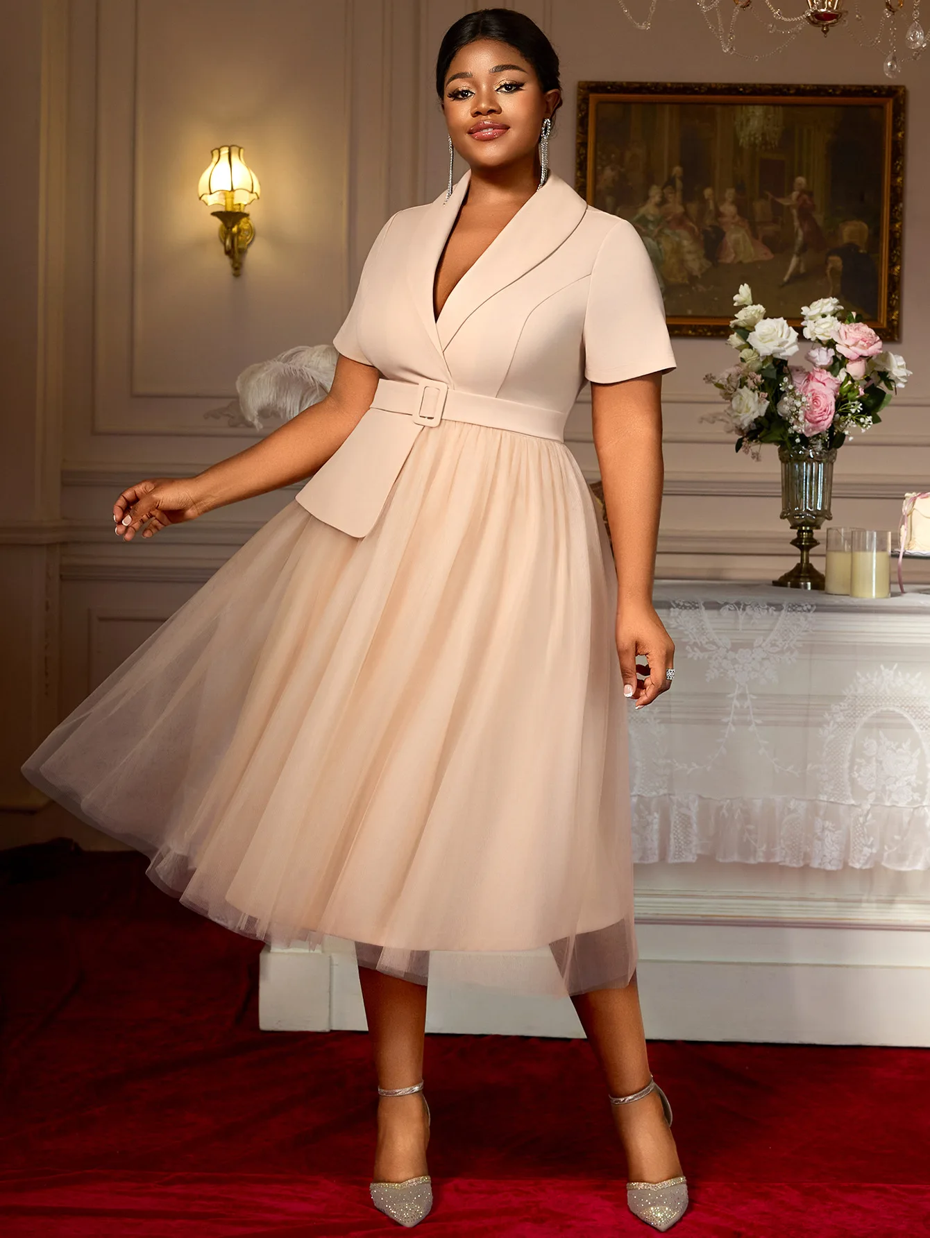 New plus-size new style elegant dress, slimming and form-fitting suit dress, belt A-line mesh dress