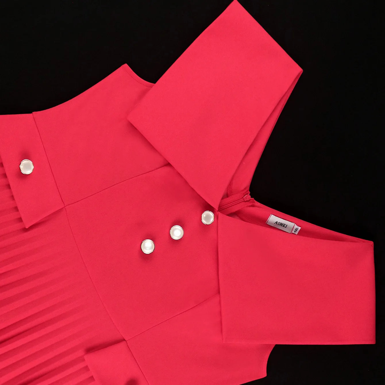 Spring 2025 Light Luxury Elegant Wind V-Neck Sleeveless Pleated Skirt High-Waist Dress for Formal Occasions Large Size Available