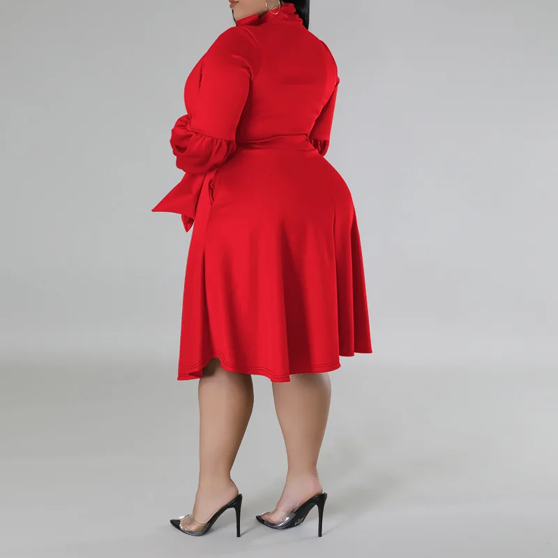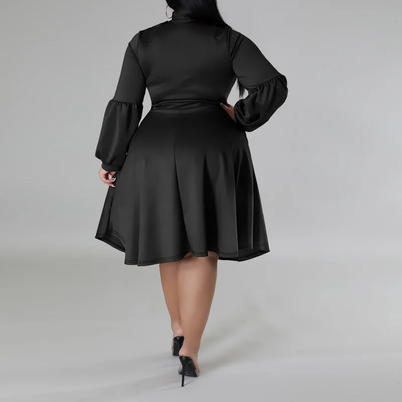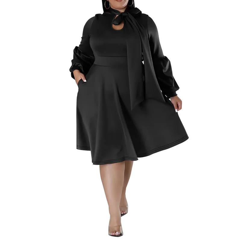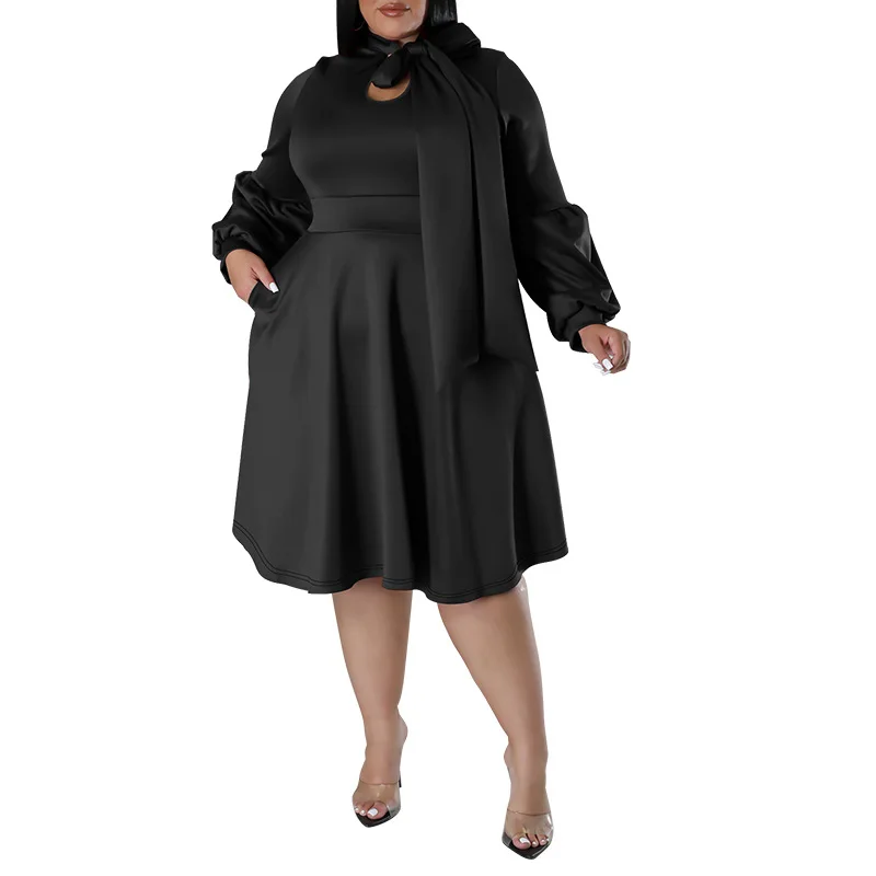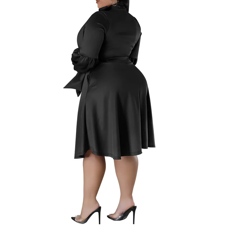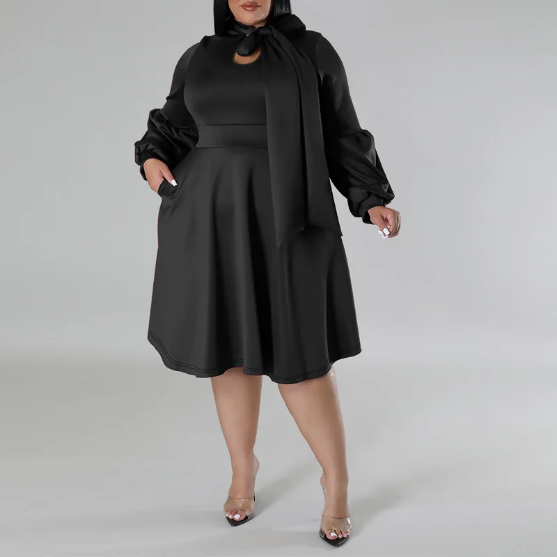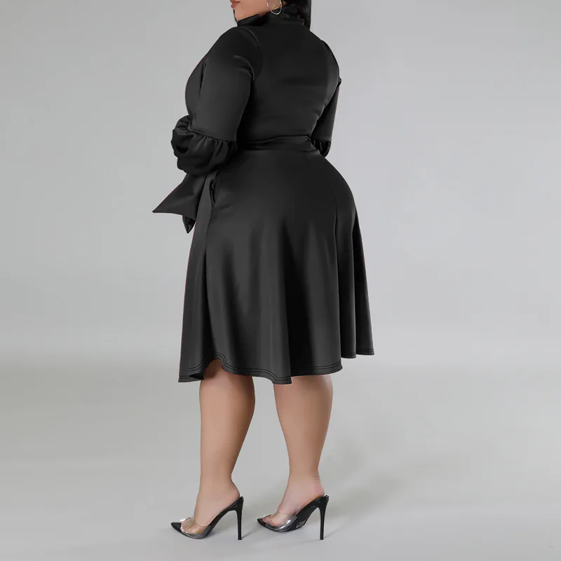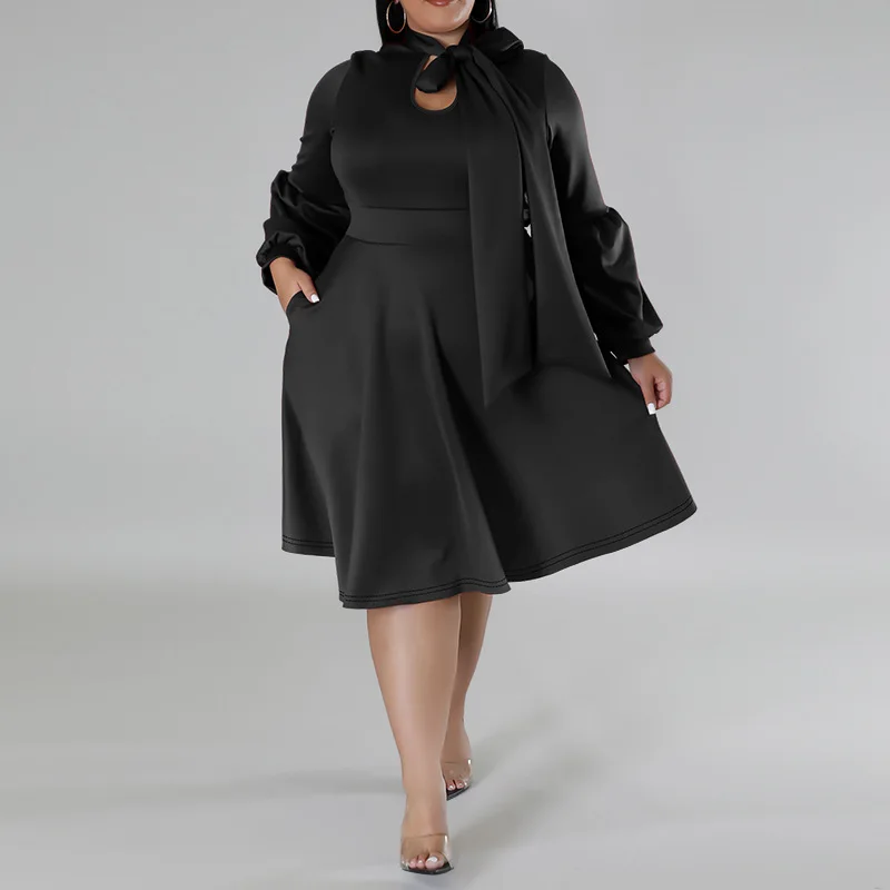 XL-5XL Plus Size Elegant Midi Dress 2024 Autumn Women Bohemian Dress Casual Long Sleeve Bandage Robe Black Oversize Dress