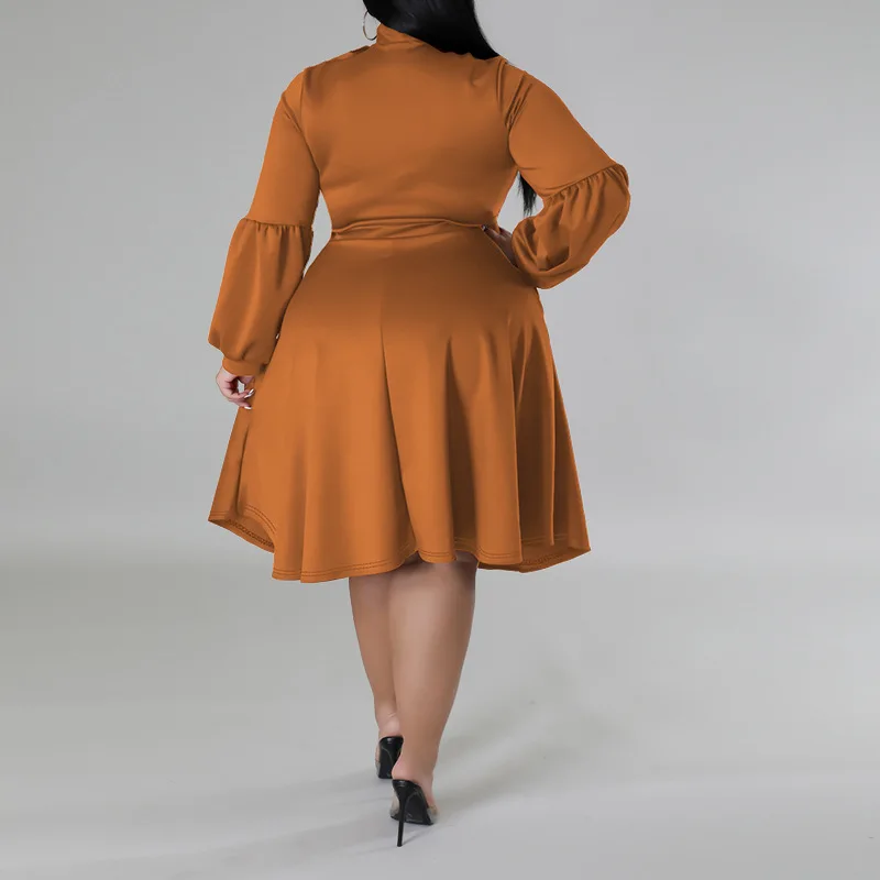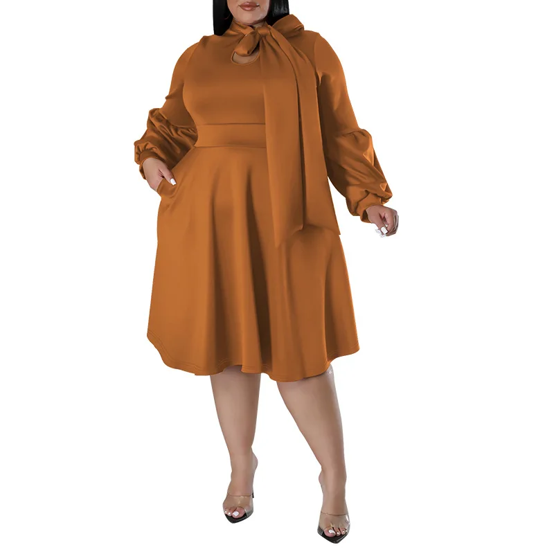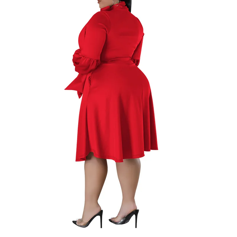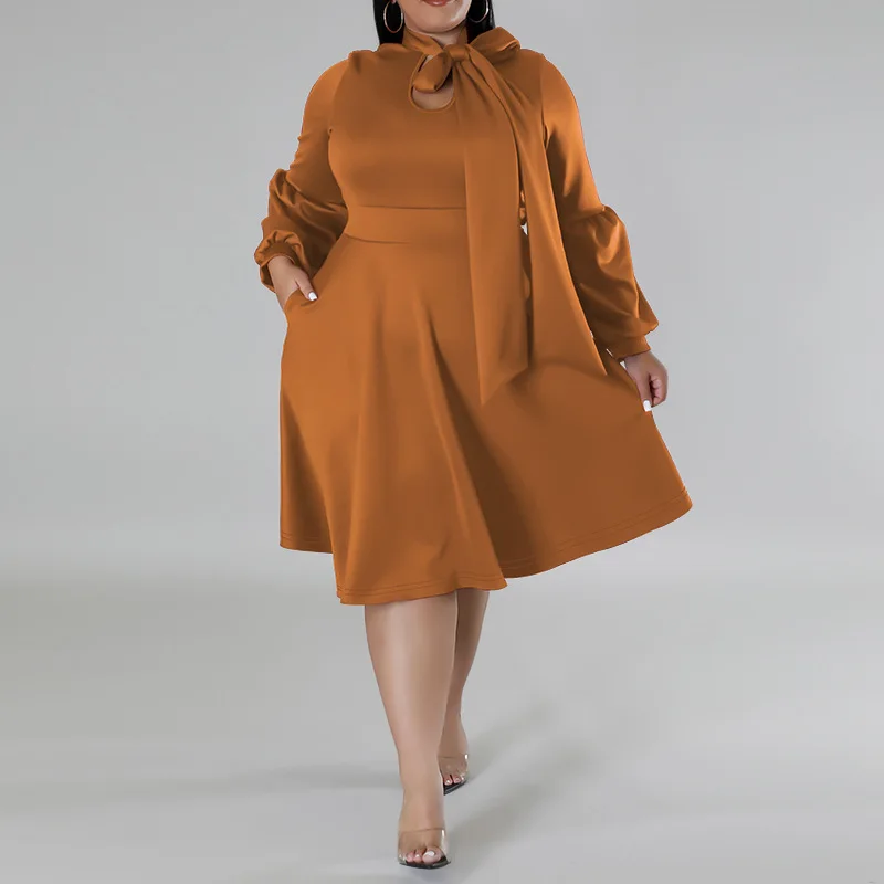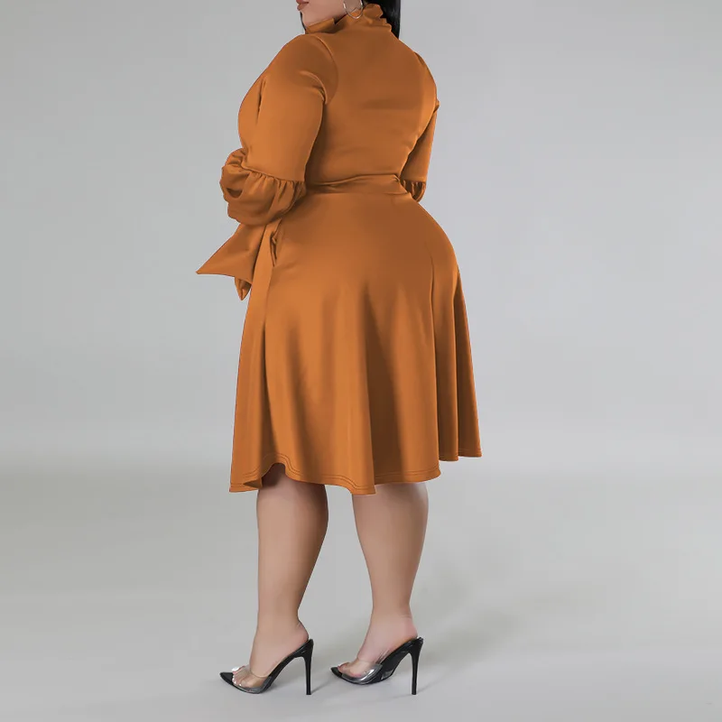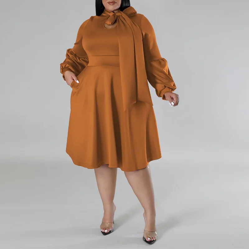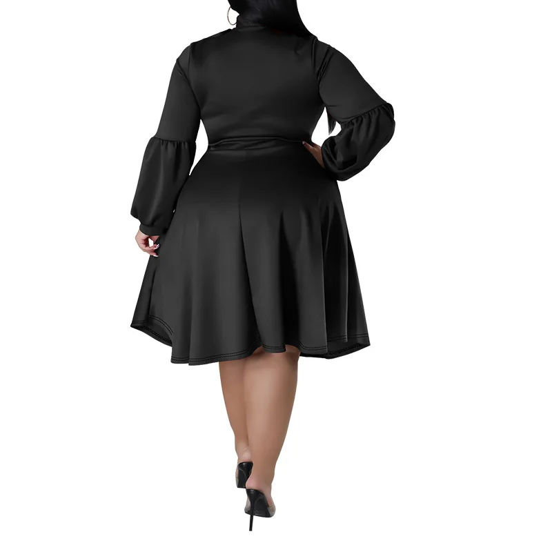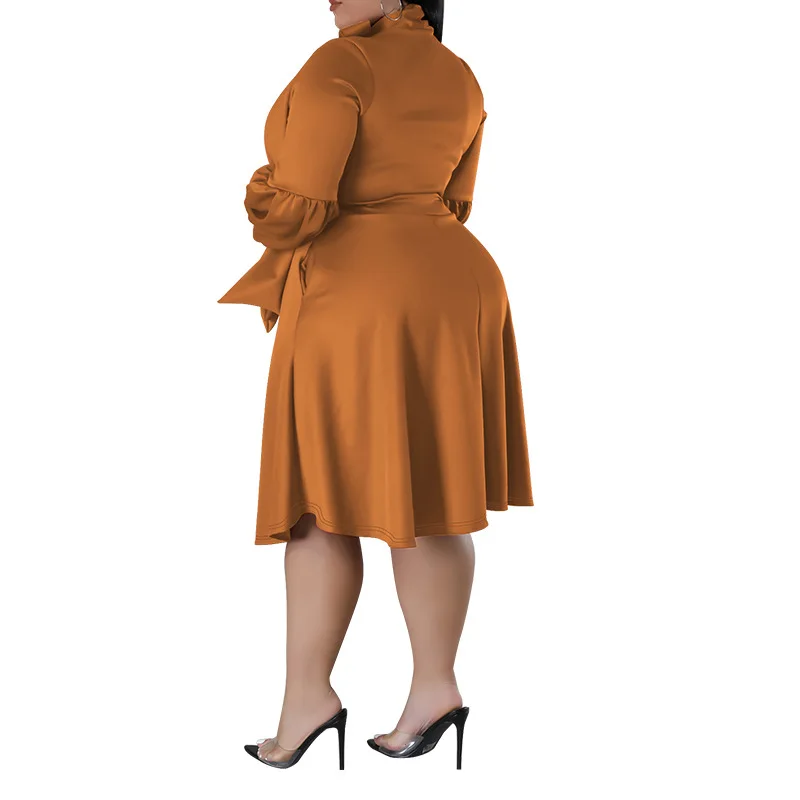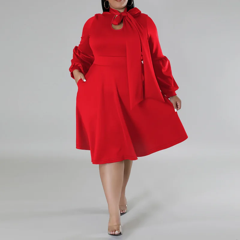 XL-5XL Plus Size Elegant Midi Dress 2024 Autumn Women Bohemian Dress Casual Long Sleeve Bandage Robe Black Oversize Dress
