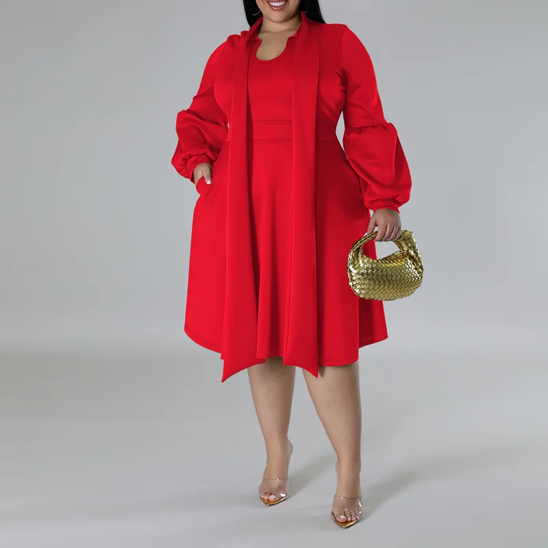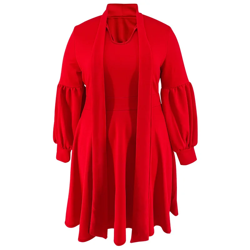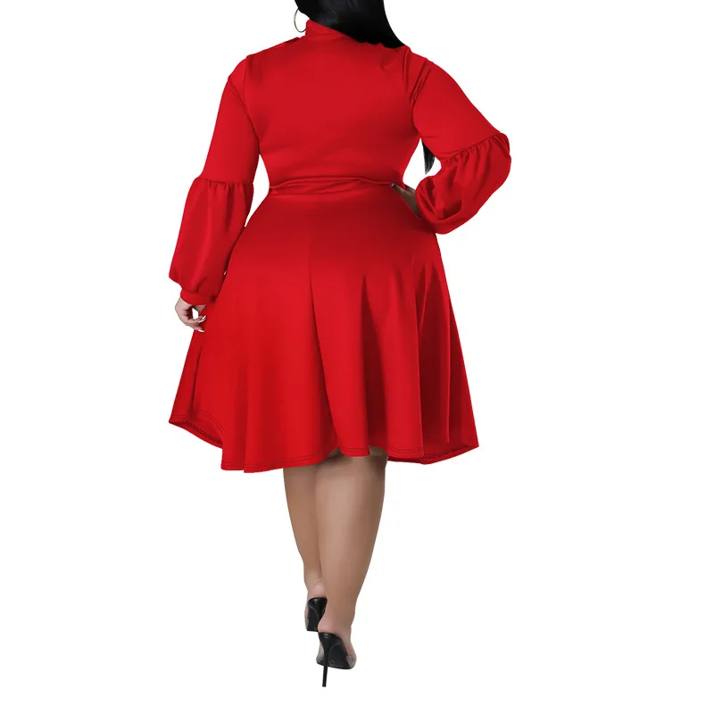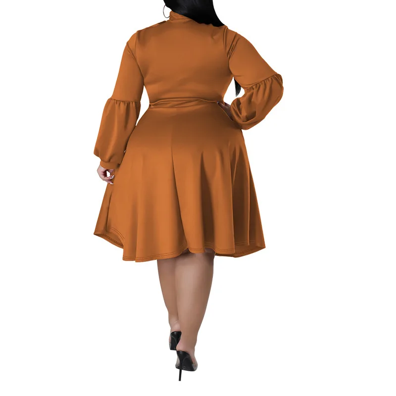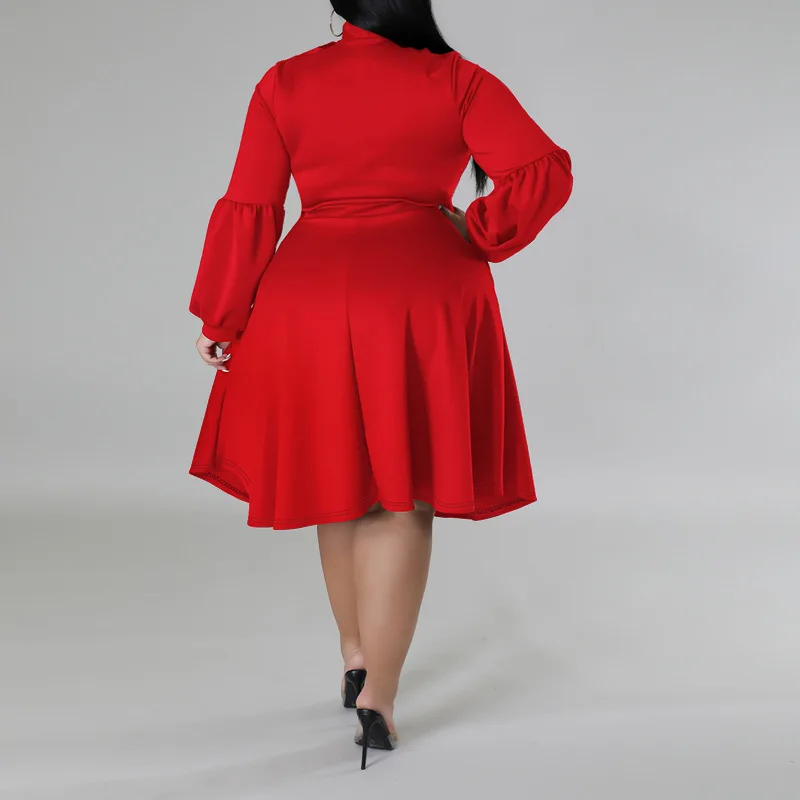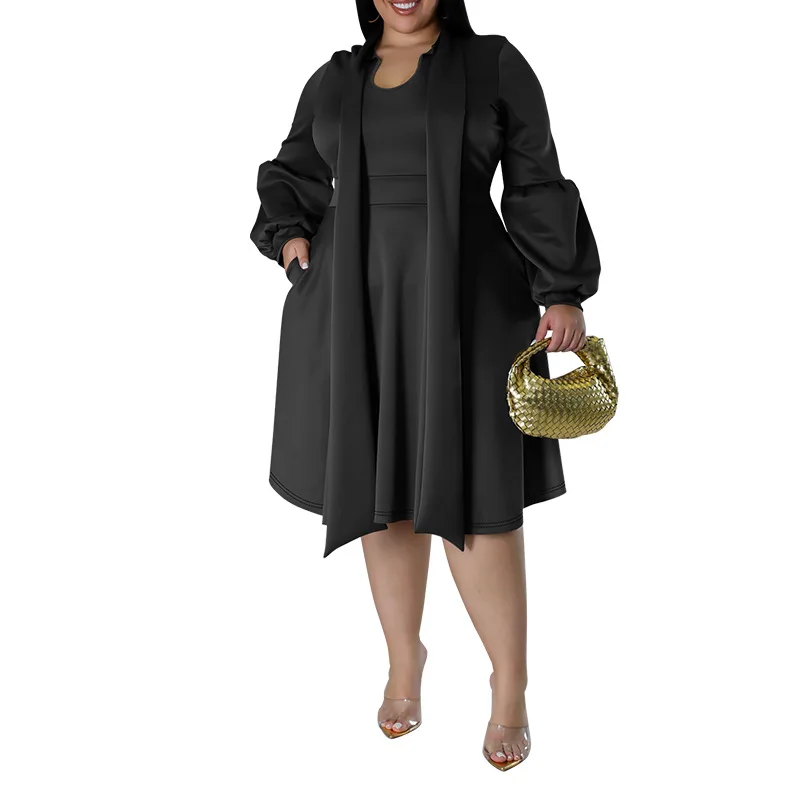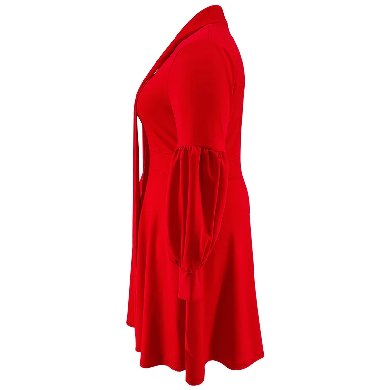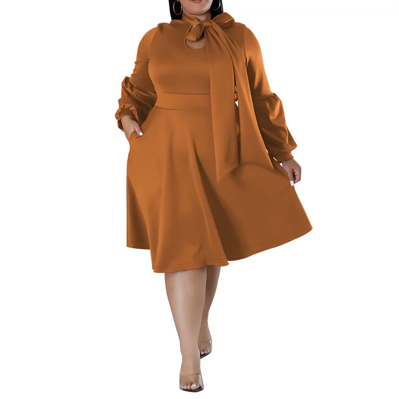 XL-5XL Plus Size Elegant Midi Dress 2024 Autumn Women Bohemian Dress Casual Long Sleeve Bandage Robe Black Oversize Dress